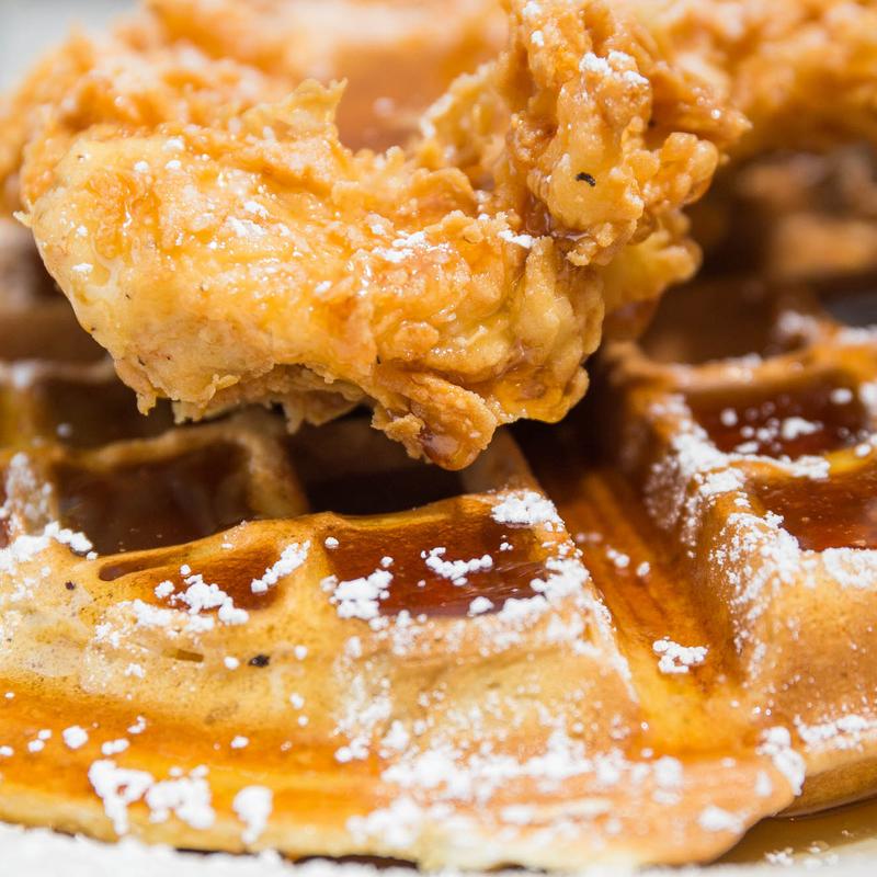 with Crispy Chicken Breast and Maple Syrup